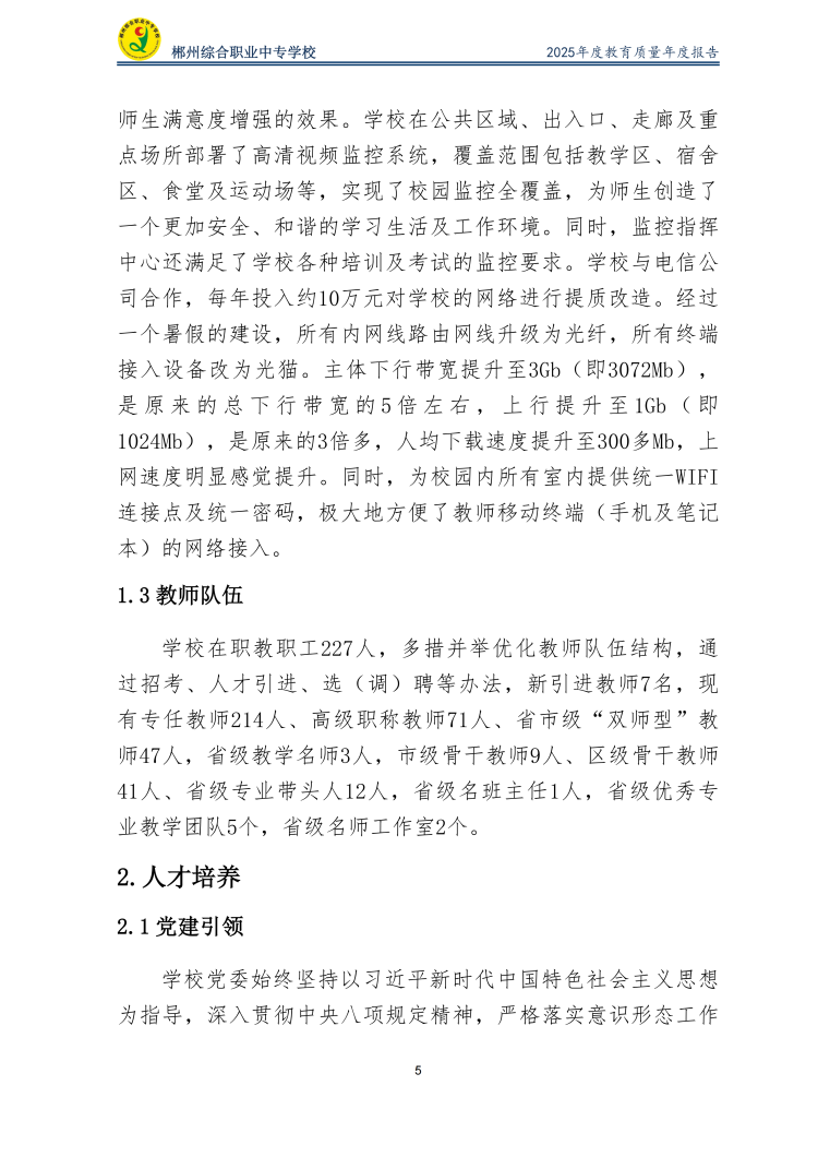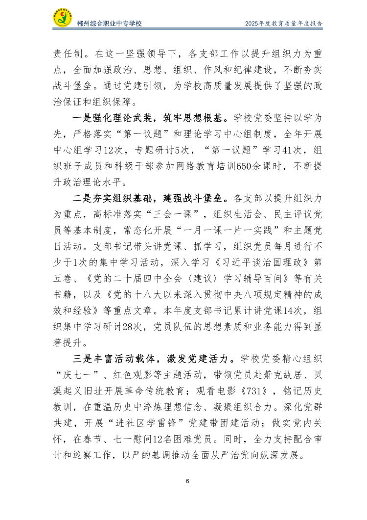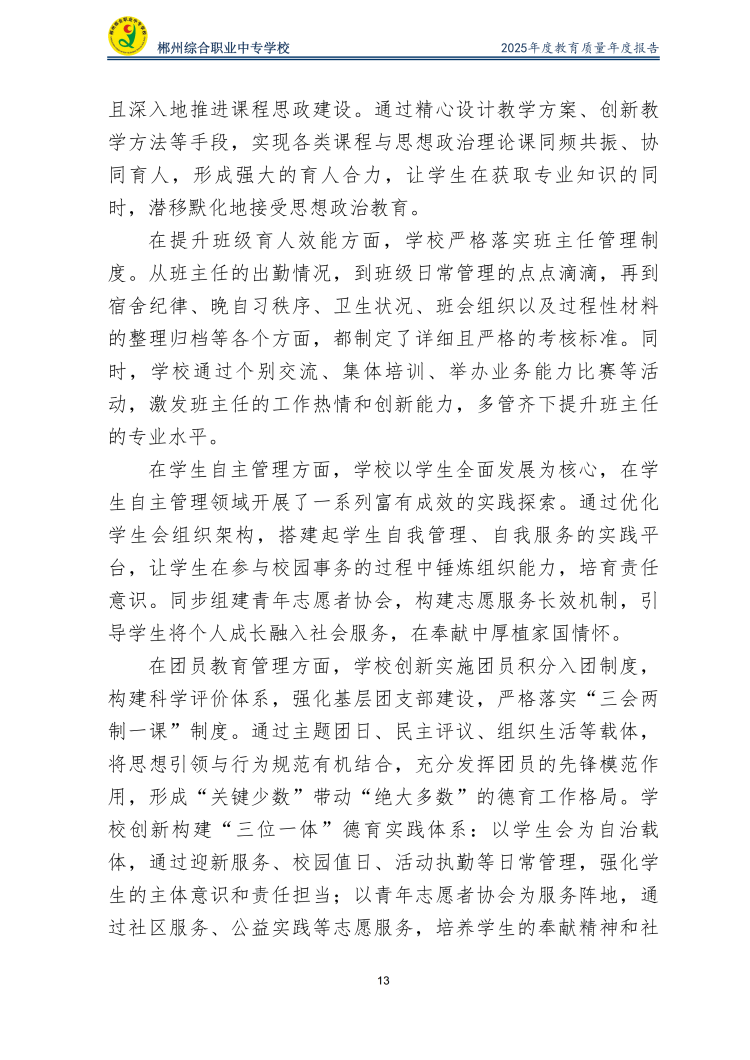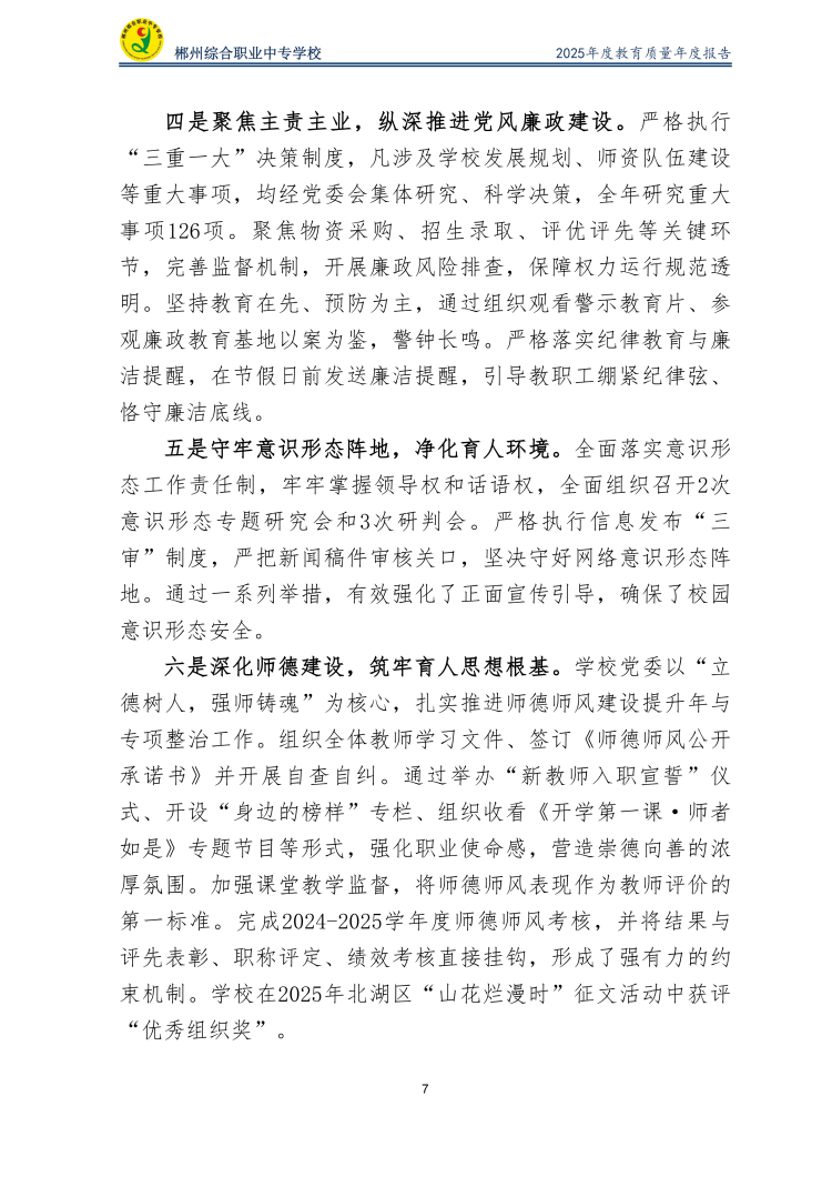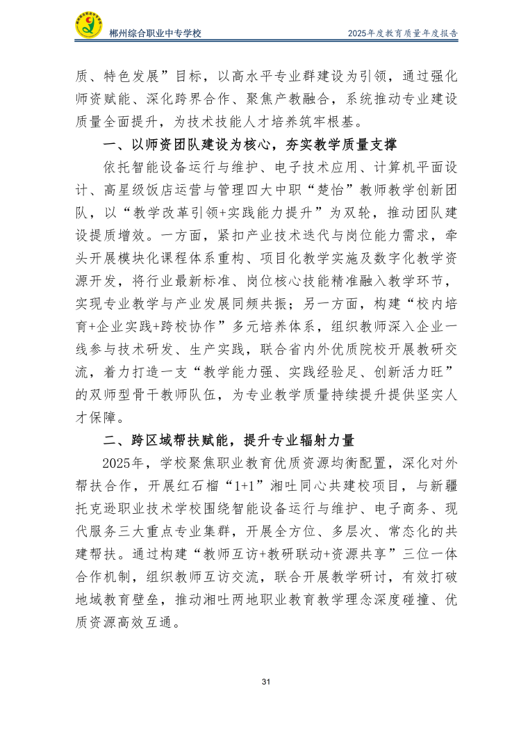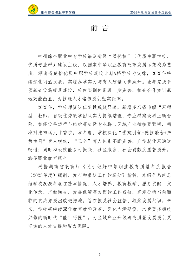 郴州综合职业中专学校2025年度教育质量年度报告