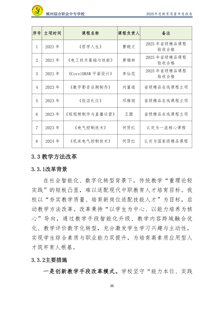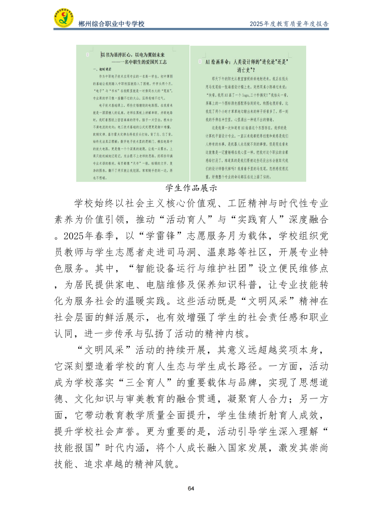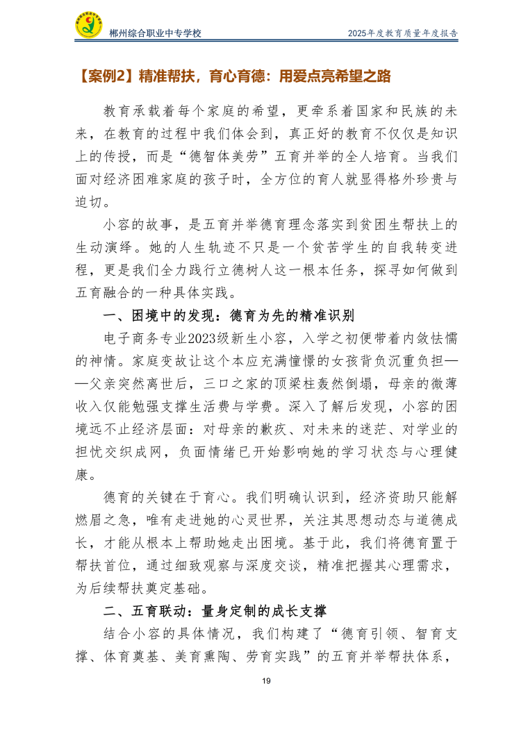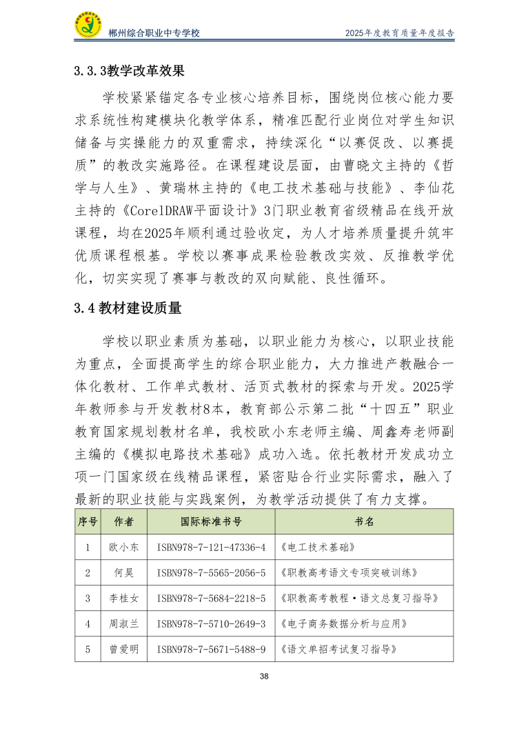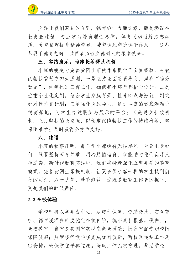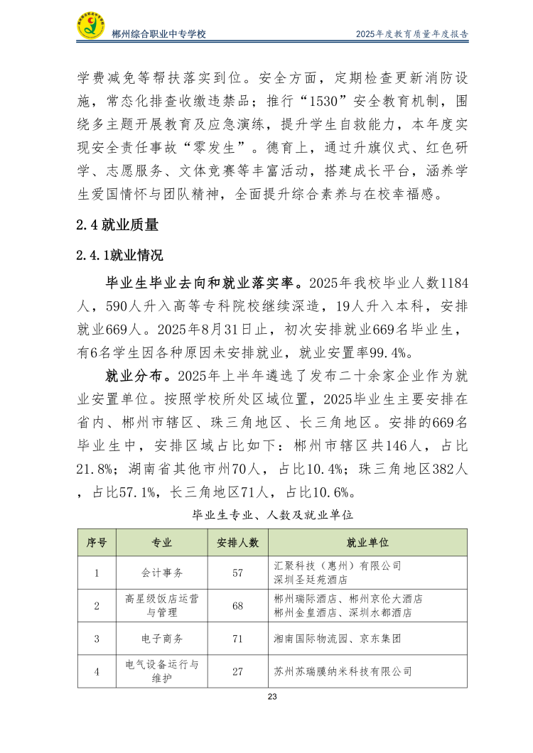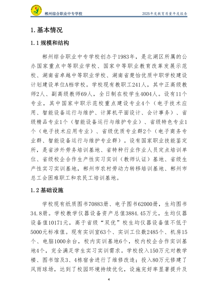 郴州综合职业中专学校2025年度教育质量年度报告